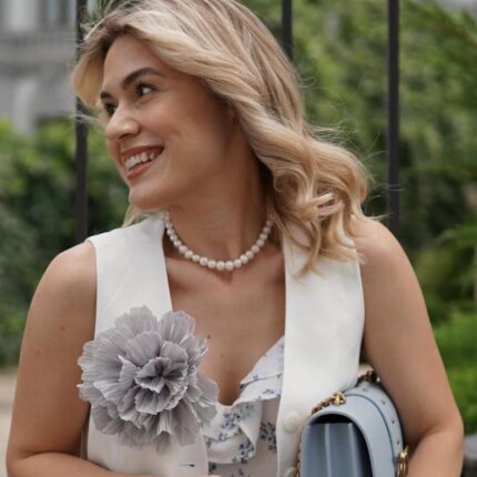 Colier cu Perle Naturale Albe de Cultură și Cristal Swarovski