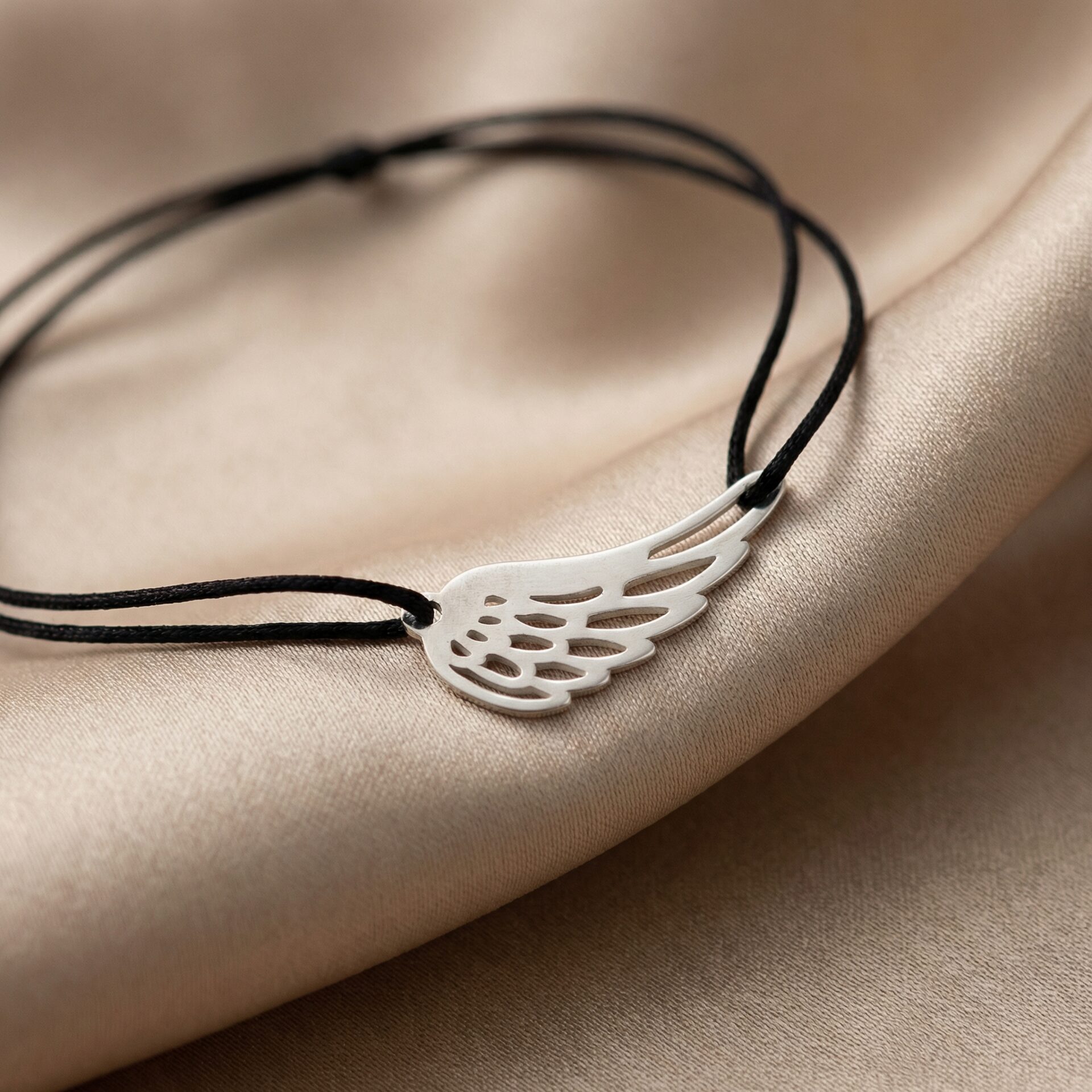 Brățară pe Șnur cu Aripa din Argint 925 – bijuterii handmade elegante, realizate manual din argint de calitate superioară.