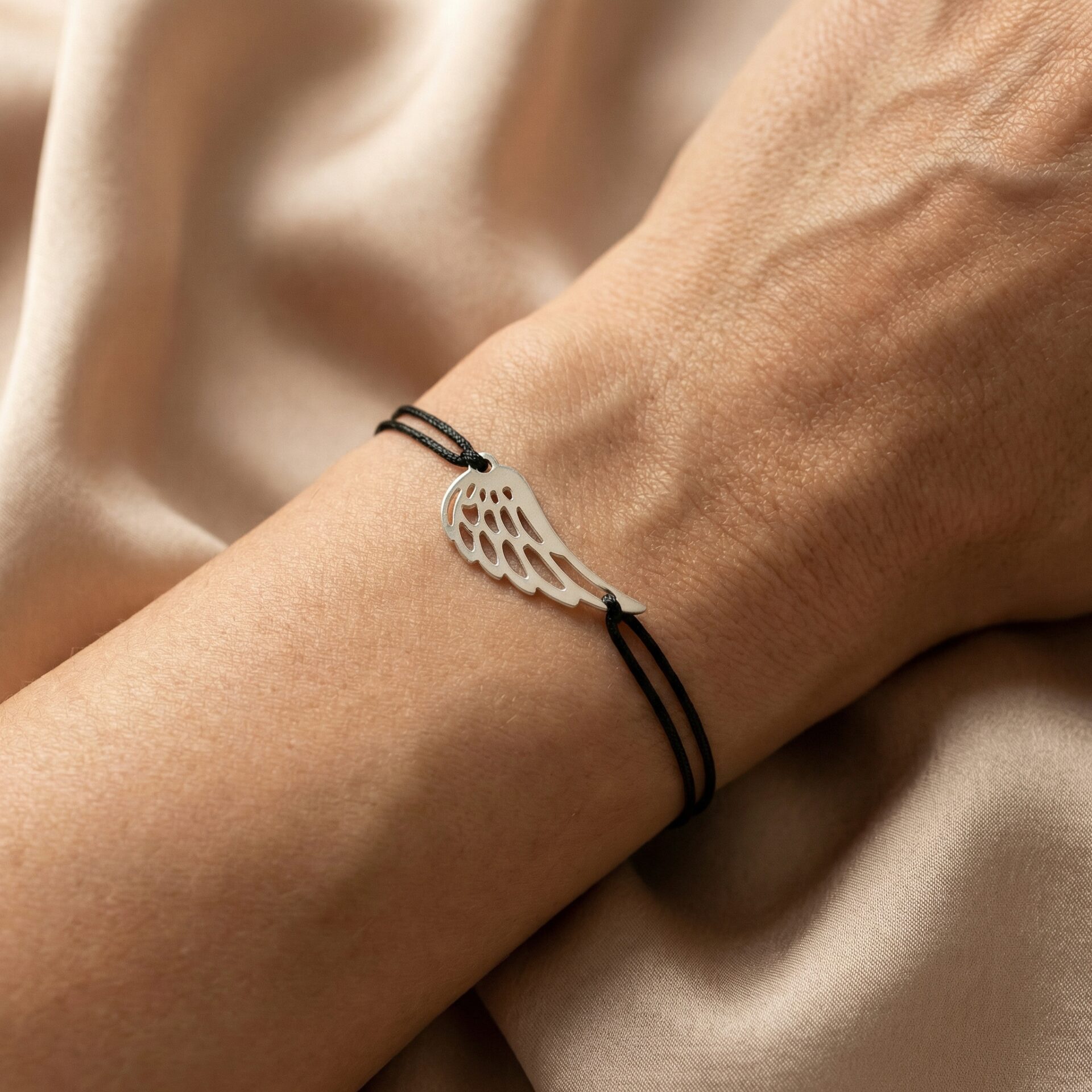Această brățară pe șnur reglabil, cu charm în formă de aripă din argint 925, este alegerea ideală pentru cei care apreciază bijuteriile simbolice, fine și ușor de asortat. Designul delicat al aripii sugerează libertate și eleganță, fiind un accesoriu discret, dar de efect, potrivit atât pentru ținutele de zi, cât și pentru cele speciale.