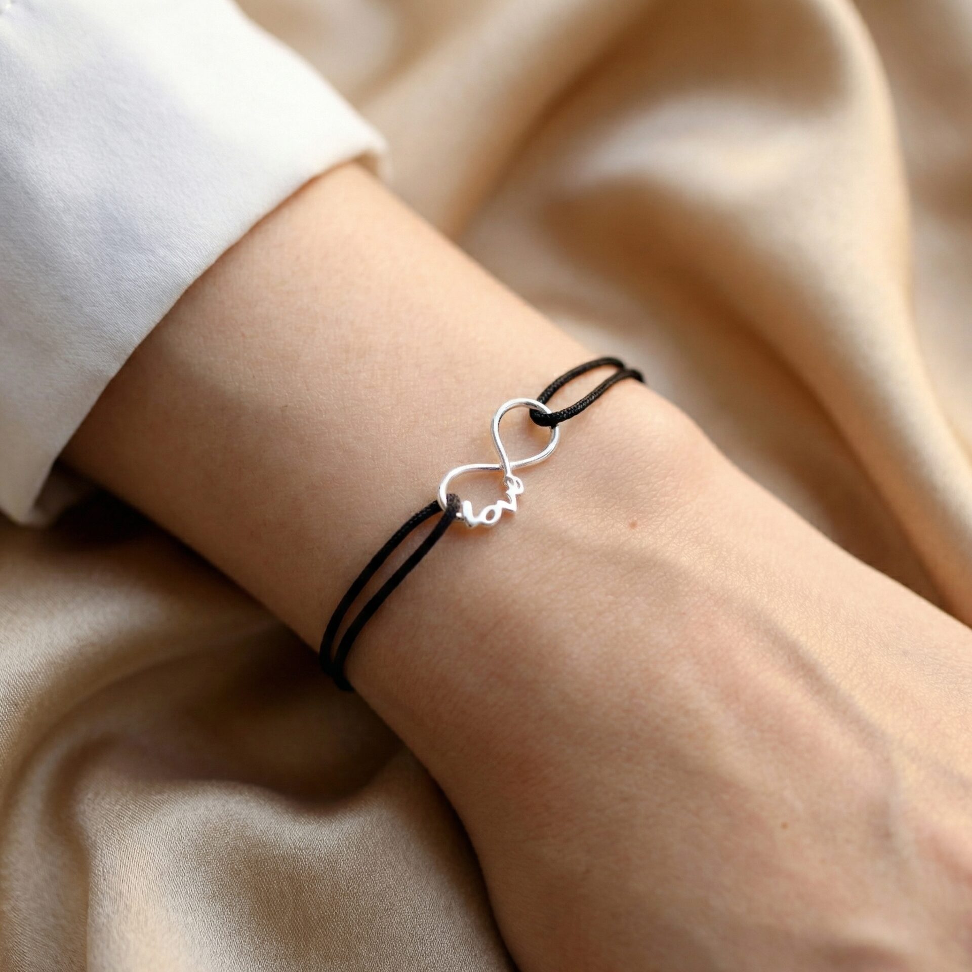 Brățară pe Șnur cu Charm Semnul Infinit din Argint 925 – bijuterii handmade elegante, realizate manual din argint de calitate superioară.