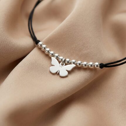 Brățară pe Șnur cu Biluțe și Fluturaș din Argint 925