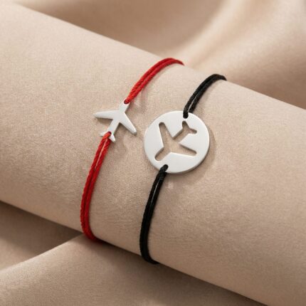 Set Brățări pe Șnur cu Pandant Avion din Argint 925