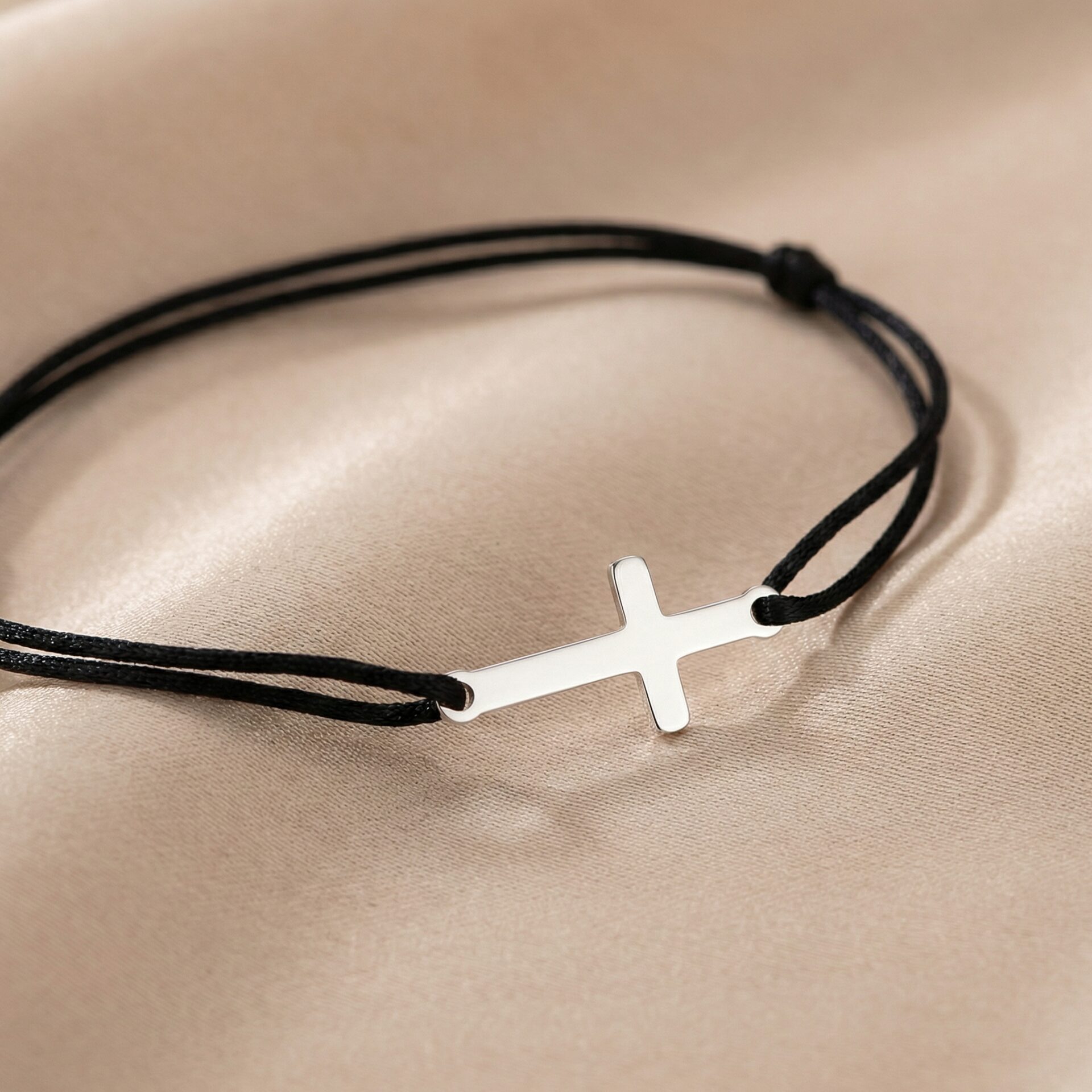 - Design: Brățară delicată, cu simbolul clasic al crucii – discret, dar încărcat de semnificație
