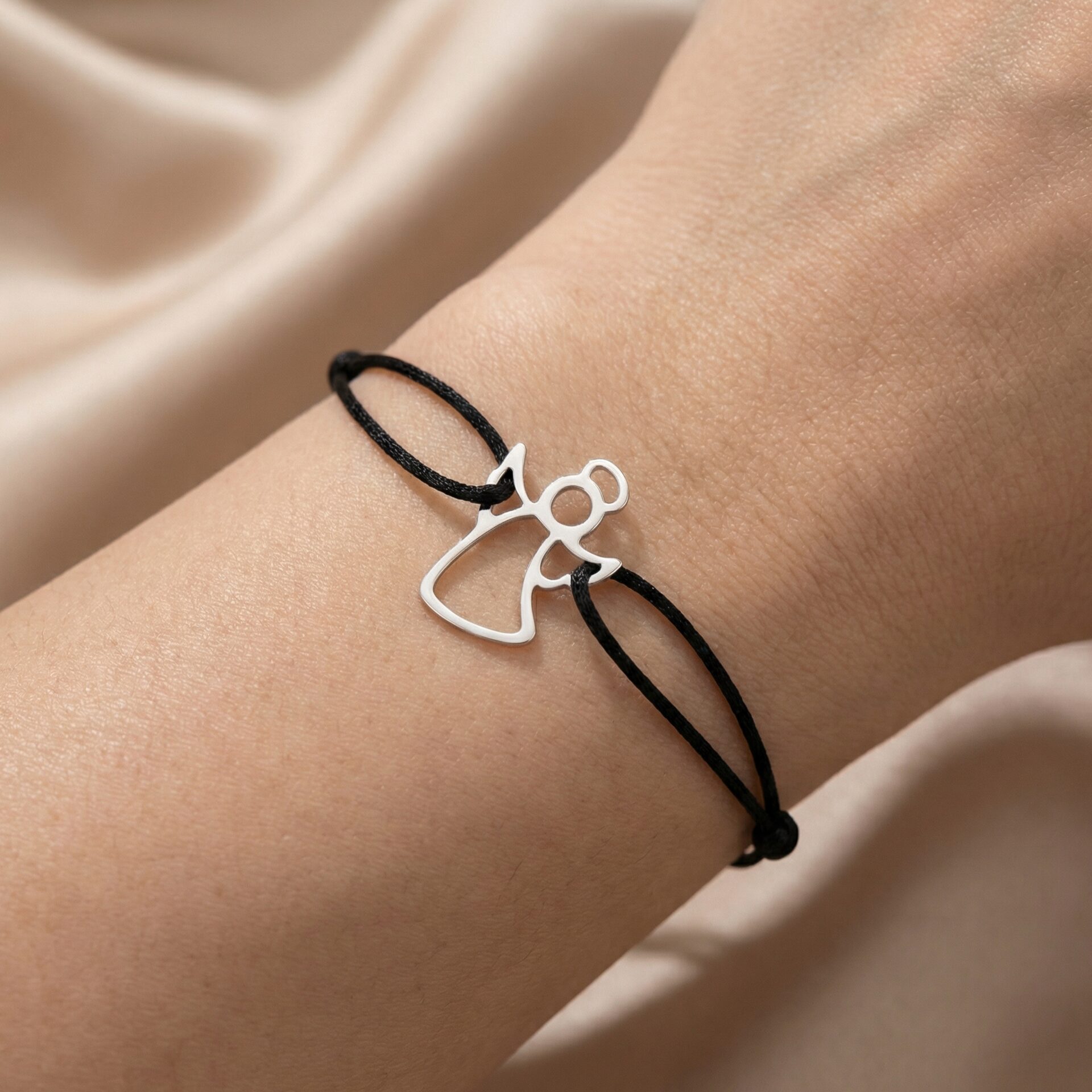 Brățară Pe Șnur Cu Îngeraș Decupat Din Argint 925 – bijuterii handmade elegante, realizate manual din argint de calitate superioară.