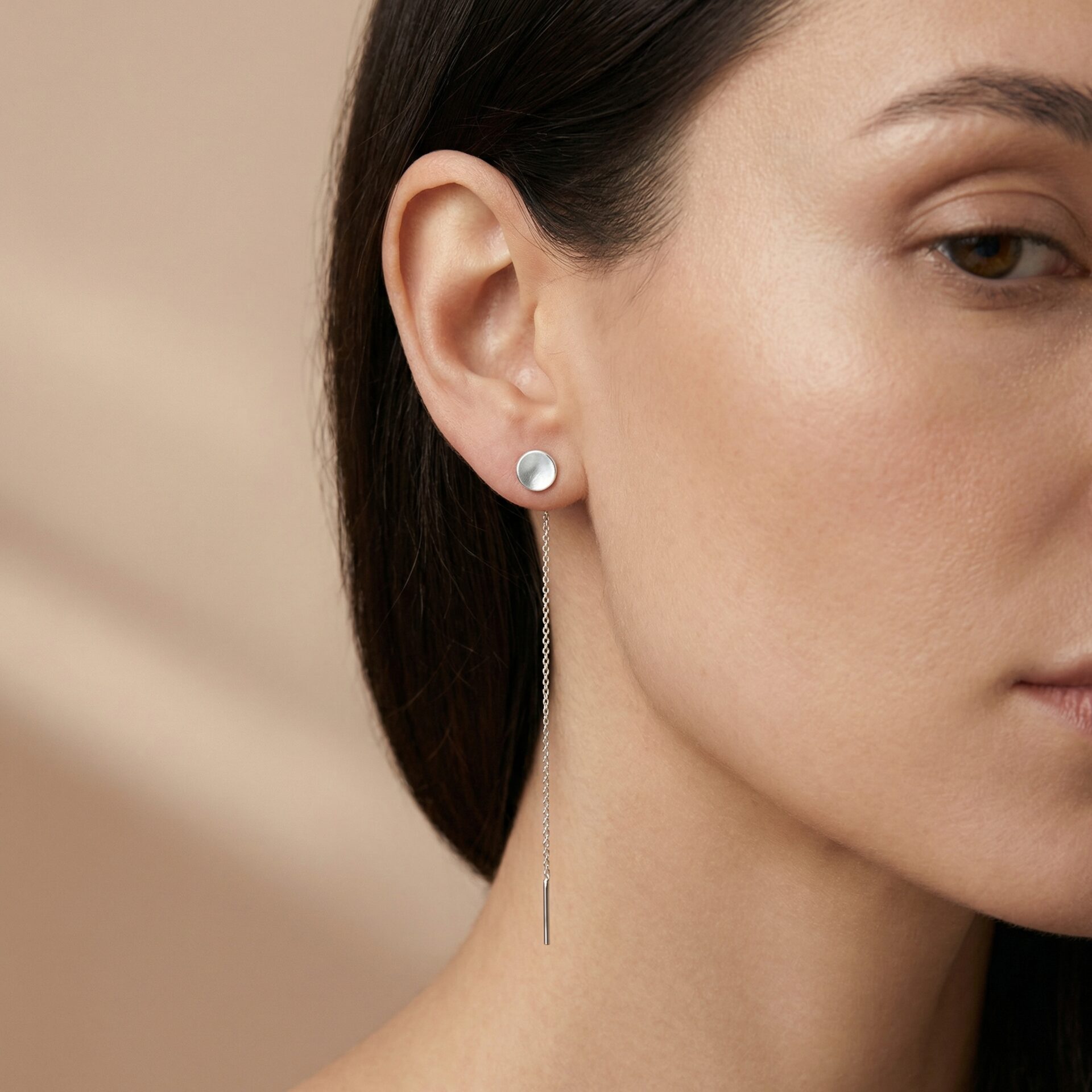 Simpli și rafinați, acești cercei lungi din argint 925 cu bănuț sunt realizați manual și exprimă eleganță atemporală. Forma rotundă, asociată cu armonia și unitatea, transformă această bijuterie într-un accesoriu delicat, dar plin de semnificație.