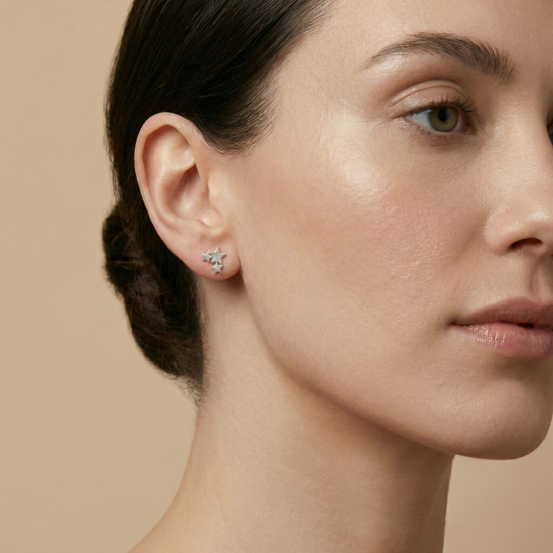 Strălucitori și moderni, acești cercei stud din argint 925 sunt realizați sub forma a trei steluțe delicate, simbol al viselor împlinite și al speranței. Designul minimalist, dar de efect, îi face ideali pentru a fi purtați zilnic sau la ocazii speciale, adăugând un plus de lumină și eleganță ținutei tale.