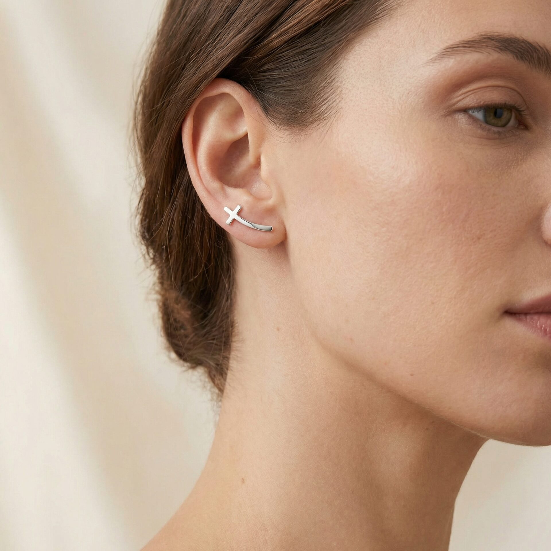 Eleganți și moderni, acești cercei tip ear climber din argint 925 se remarcă prin designul lor minimalist, în formă de cruce delicată, ce urcă subtil pe lobul urechii. Simbol de credință, protecție și echilibru, crucea este reinterpretată într-o variantă contemporană, potrivită pentru orice ocazie.