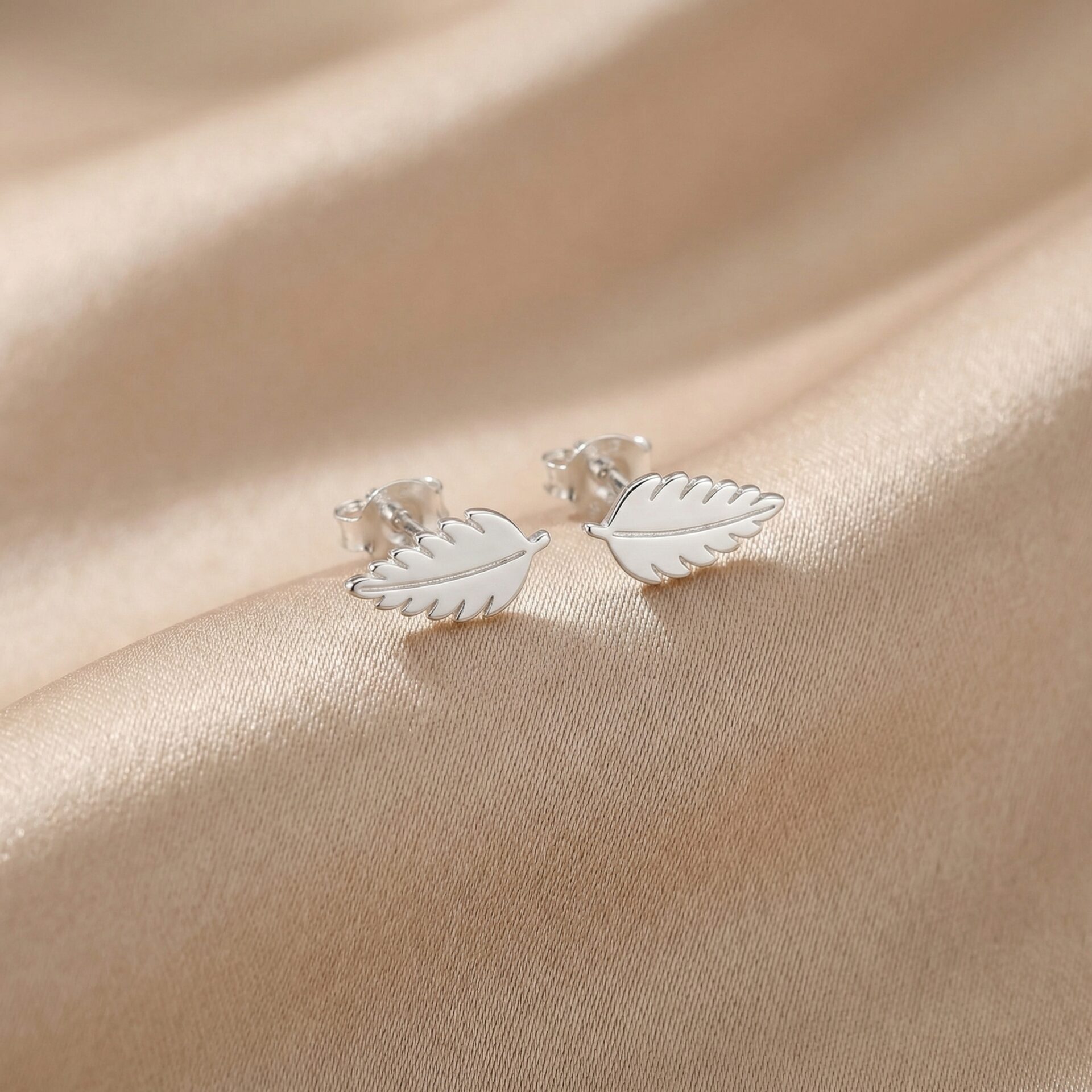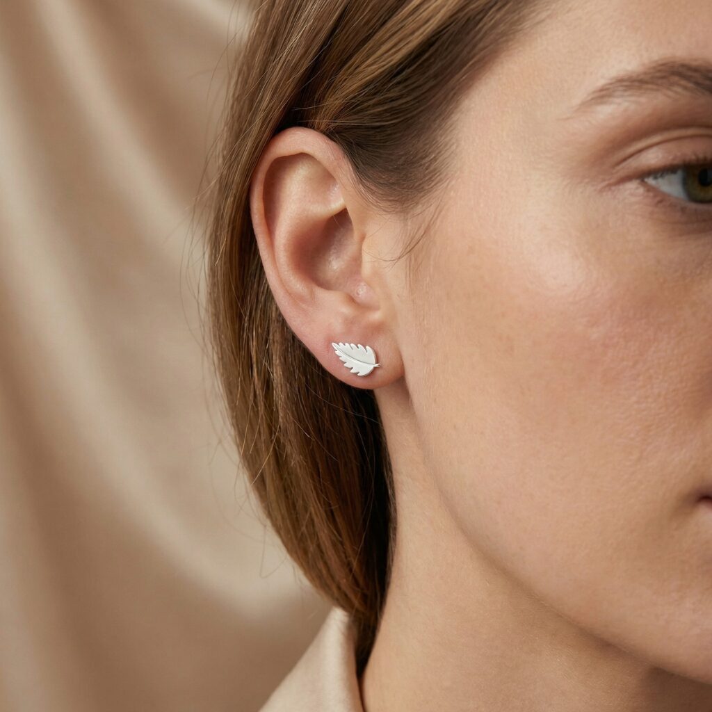Cercei Stud din Argint 925 cu Frunză – bijuterii handmade cu simbol spiritual, lucrate manual din argint autentic.