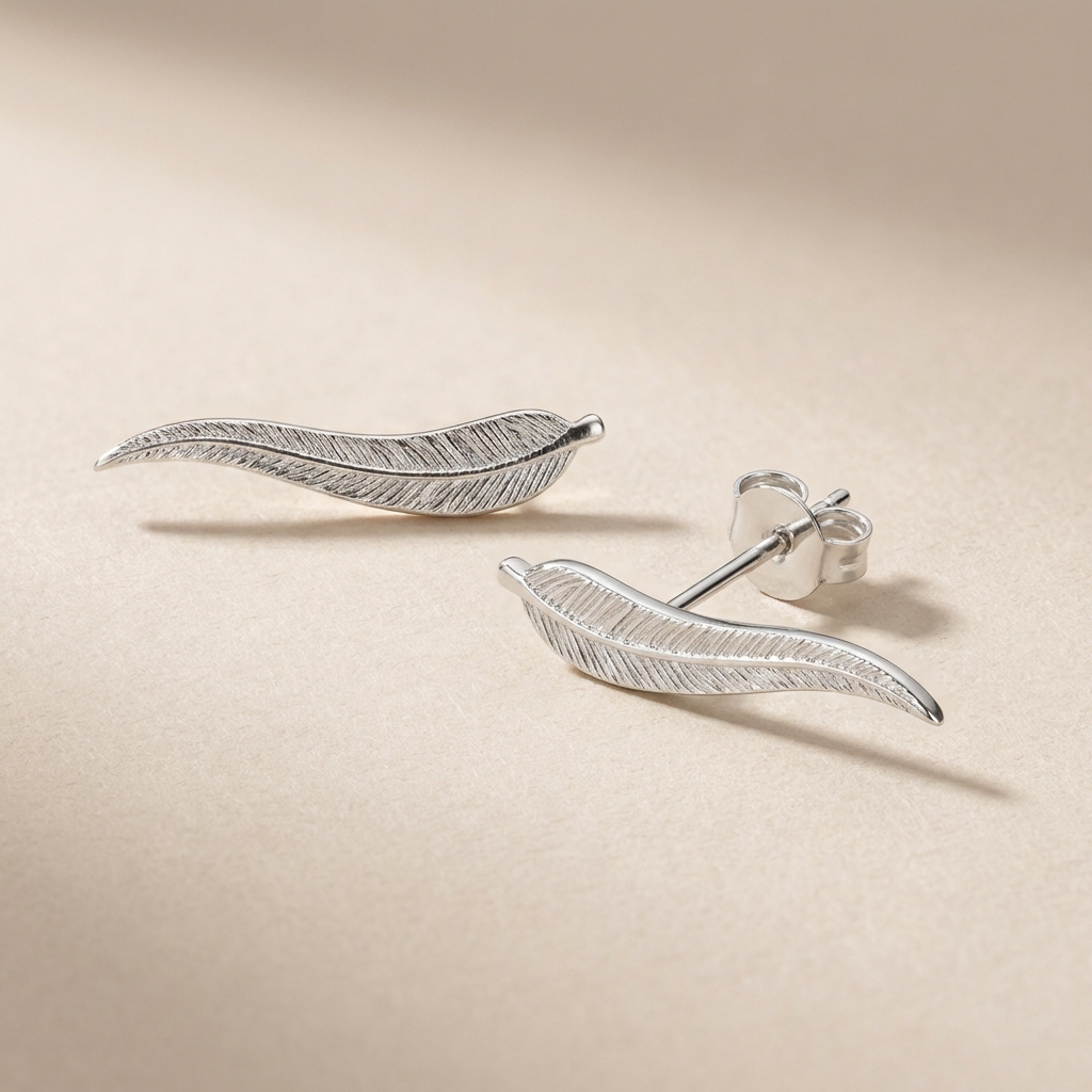 Cercei Stud din Argint 925 cu Frunză – bijuterii handmade cu simbol spiritual, lucrate manual din argint autentic.