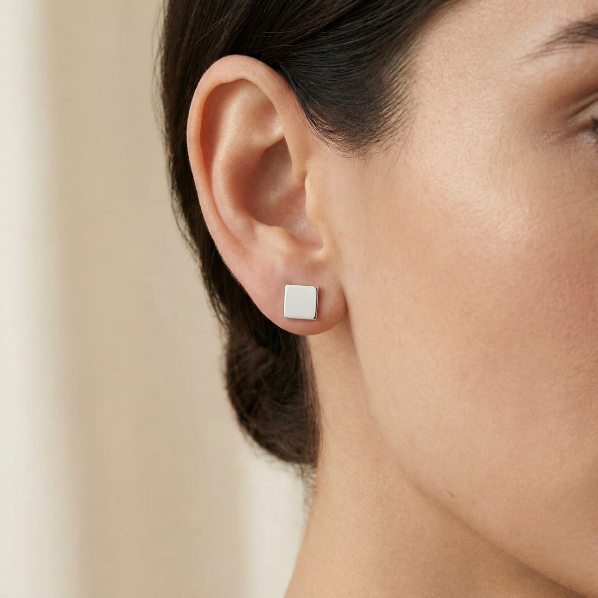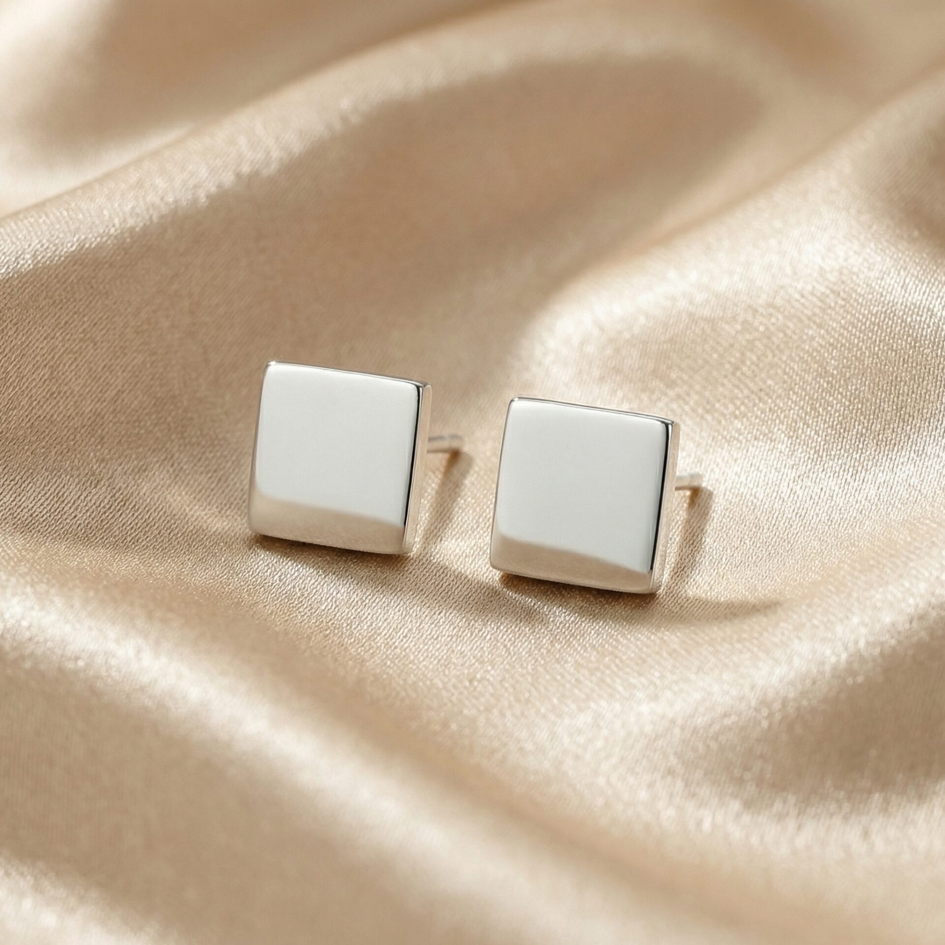 Cercei Stud din Argint 925 cu Pătrat – bijuterii handmade cu simbol spiritual, lucrate manual din argint autentic.