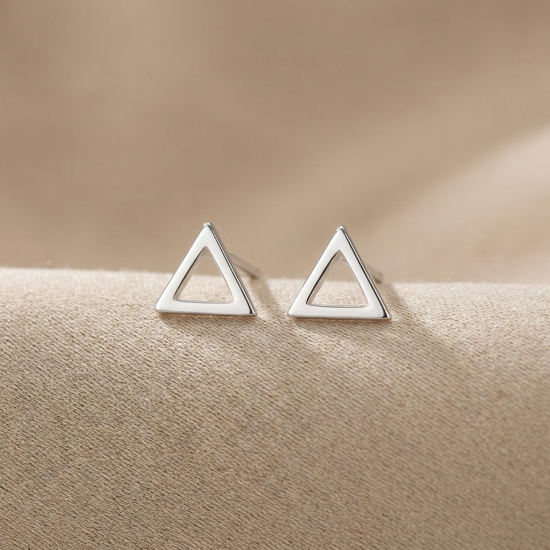 Cercei Stud din Argint 925 cu Triunghi – bijuterii handmade cu simbol spiritual, lucrate manual din argint autentic.