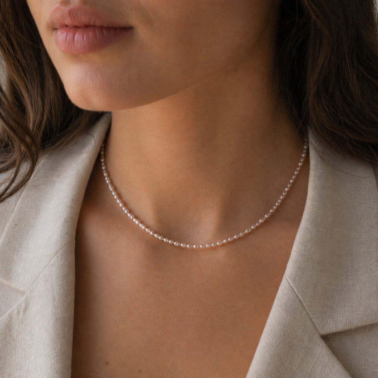 Un colier delicat și elegant, realizat din perle naturale mici cu nuanțe roze și închizători din argint 925. Această bijuterie minimalistă, lucrată manual, este alegerea perfectă pentru un look discret și rafinat, potrivit atât pentru purtare zilnică, cât și pentru ocazii speciale.