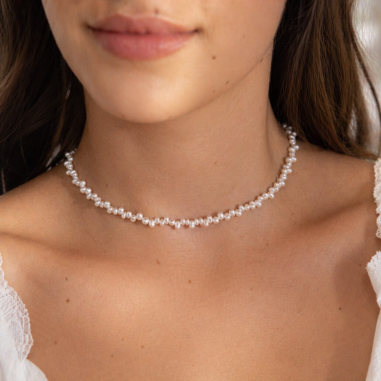 Design: Colier lucrat manual, cu perle dispuse delicat pentru un efect elegant