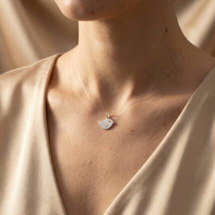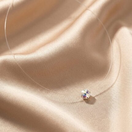 Colier pe fir transparent cu bob Swarovski tăietură Rose Cut și argint 925