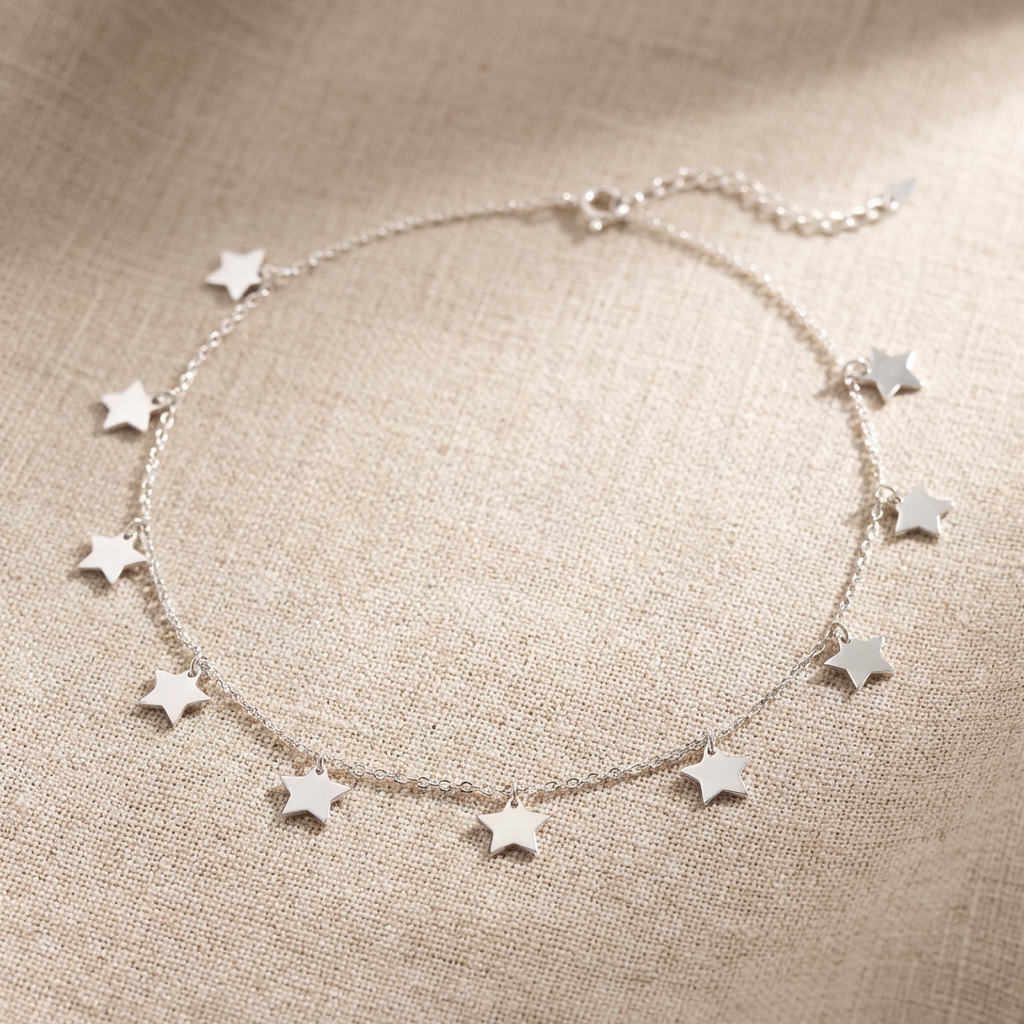 Adaugă un strop de strălucire look-ului tău cu acest colier choker din argint 925 , decorat cu cinci/șapte steluțe fine de aproximativ 8 mm. Realizat manual la dimensiunea dorită, colierul este o alegere ideală pentru un stil modern, feminin și rafinat.