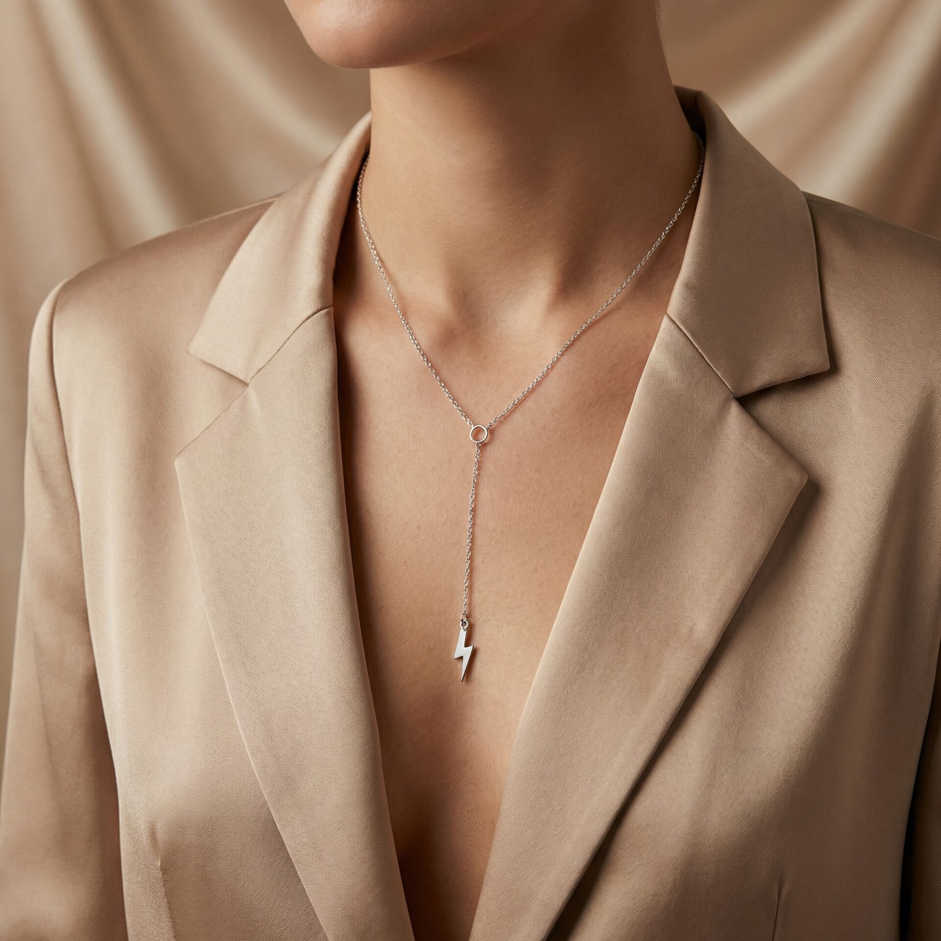 Acest colier lung cu charm fulger din argint 925 este perfect pentru a adăuga un strop de energie și rafinament oricărei ținute. Realizat manual, pe comandă, acest colier poate fi personalizat la dimensiunea dorită, pentru a se potrivi perfect stilului tău.