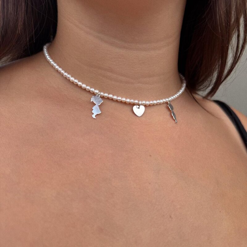 Colier din perle naturale de cultura si charmuri din argint925.