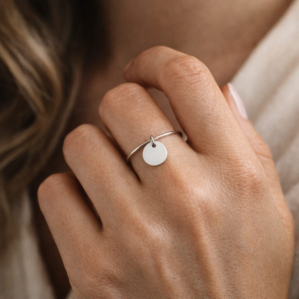Adaugă un accent subtil de rafinament look-ului tău cu acest inel minimalist, lucrat manual din argint 925 și decorat cu un pandantiv rotund cu design simplu și sofisticat. Ușor de asortat și extrem de versatil, acest inel este alegerea ideală pentru purtare zilnică sau pentru a fi oferit cadou unei persoane speciale.