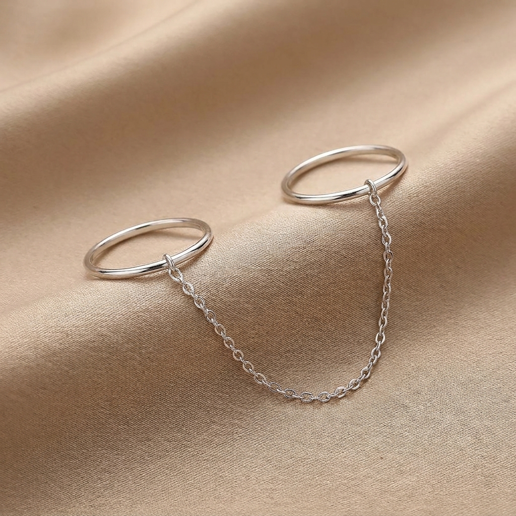 Un model minimalist și modern, inelul dublu cu verigă simplă și lanț din argint 925 este realizat manual în atelierul nostru, special pe comandă. Designul său delicat îmbină eleganța cu un aer nonconformist, fiind potrivit atât pentru purtare de zi cu zi, cât și pentru ocazii speciale.