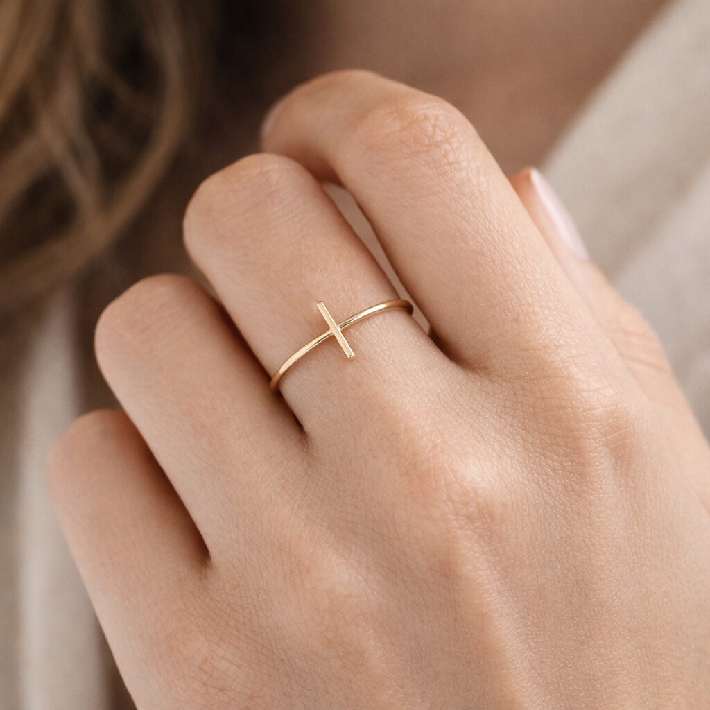 Design: Inel delicat în formă de cruce, simbol al credinței și al protecției