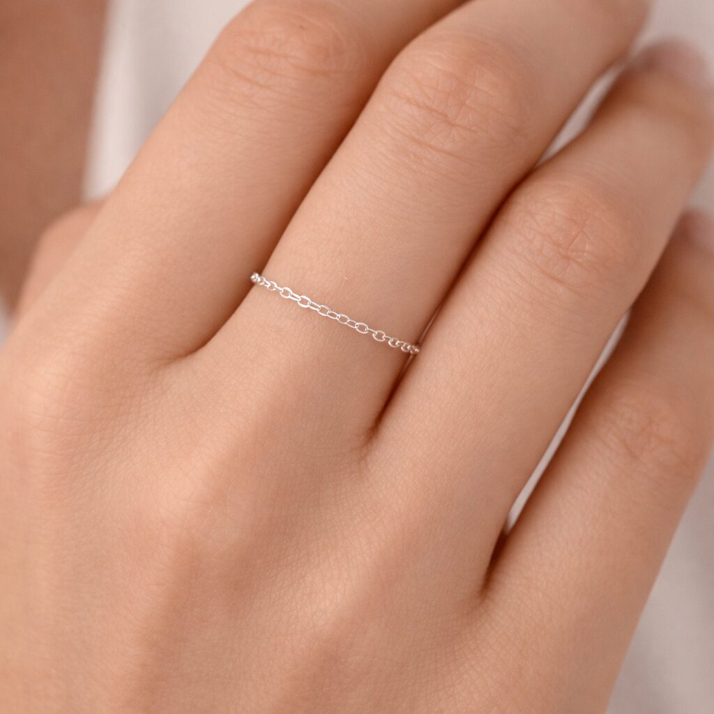 Design: Inel subțire, tip lanț fin versatil și ușor de asortat