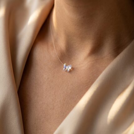 Colier pe fir transparent cu bob Swarovski tăietură Rose Cut și argint 925