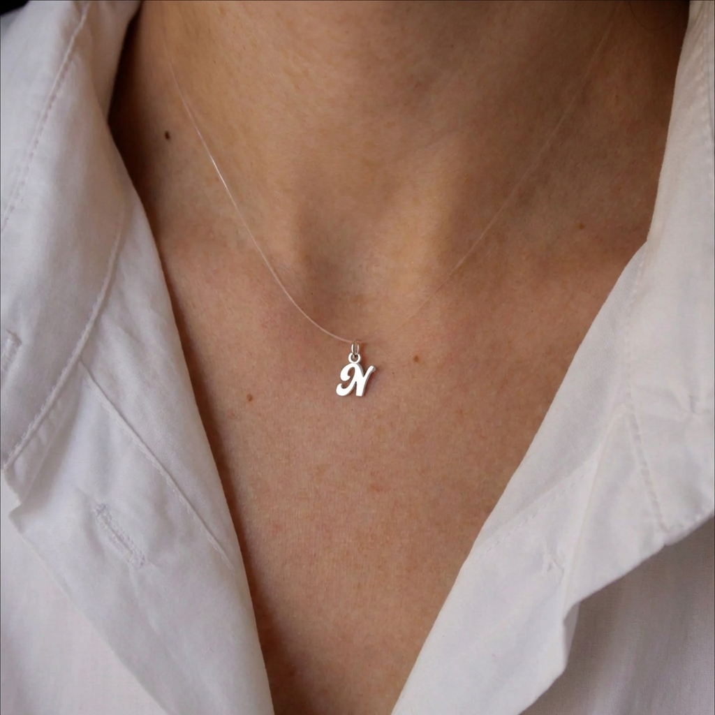 Lantul pe fir transparent cu initiala din argint925 este alegerea perfecta!