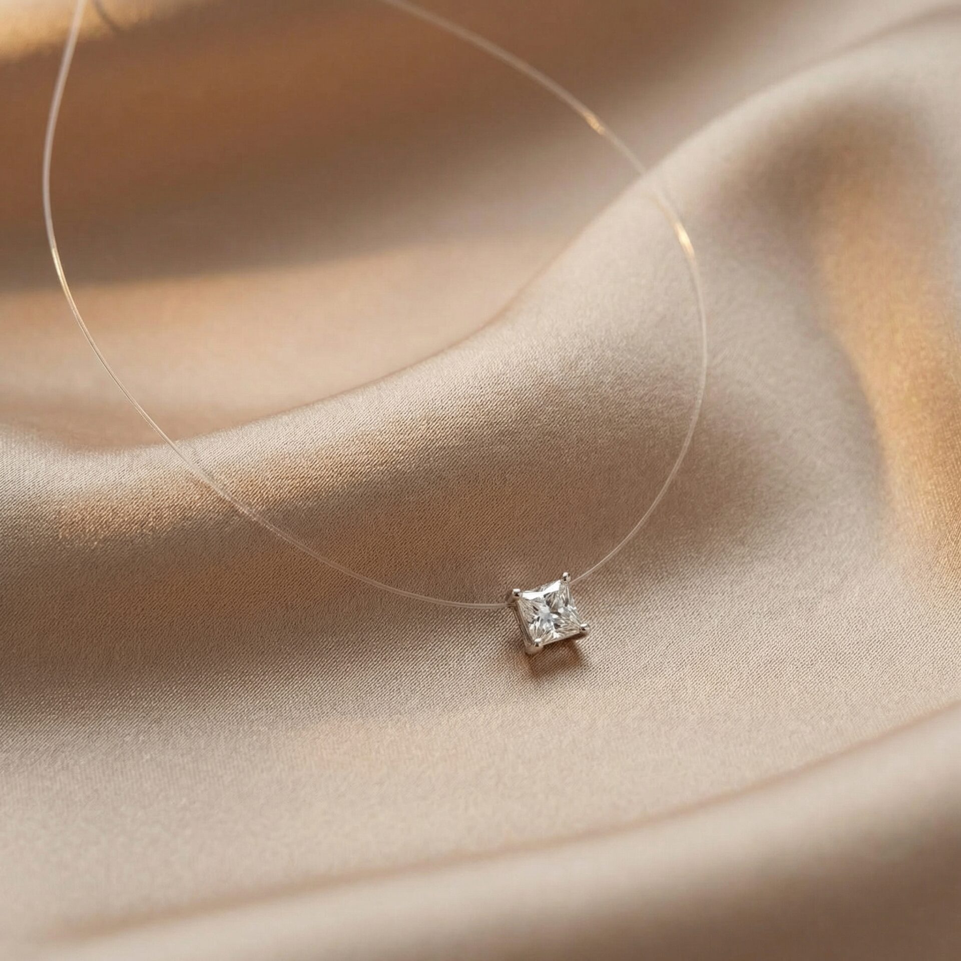 Firul invizibil poate crea iluzia că bijuteria plutește în jurul gâtului, conferind un aspect ușor și delicat.