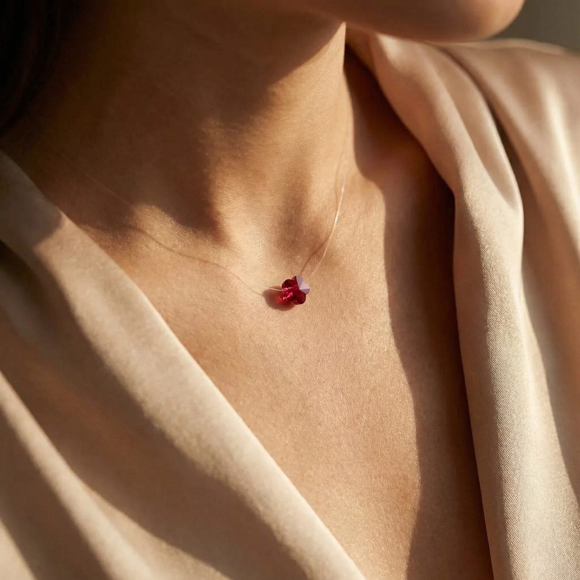 Firul invizibil poate crea iluzia că bijuteria plutește în jurul gâtului, conferind un aspect ușor și delicat.