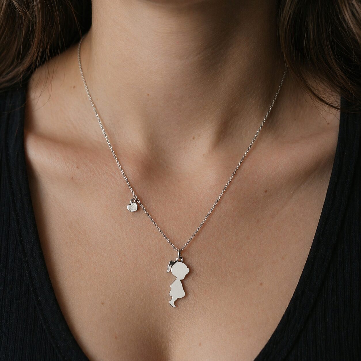 Poartă mereu aproape de inimă simbolul iubirii necondiționate cu acest colier delicat din argint 925, cu pandantiv în formă de fetiță. O bijuterie lucrată manual, plină de emoție și semnificație – perfectă pentru mămici, bunici sau ca dar special la naștere, botez sau aniversare.