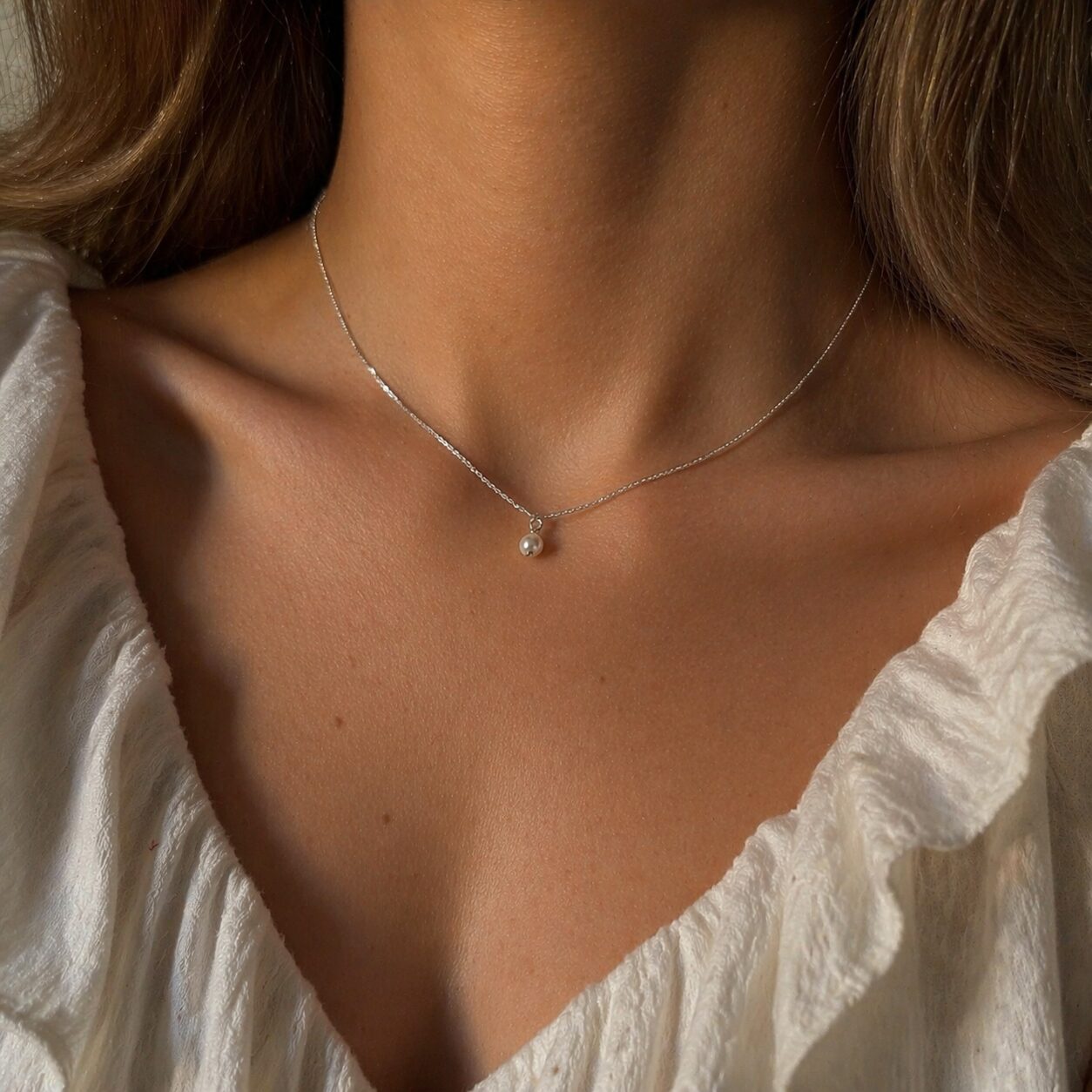 Acest lanț din argint cu o perluța naturală de cca 2-3 mm este un accesoriu delicat, ideal pentru a adăuga un strop de rafinament ținutelor tale. Perluța atârnată la baza lănțișorului creează un efect subtil și elegant, perfect pentru orice ocazie, fie că este vorba de o ținută casual sau una de seară.