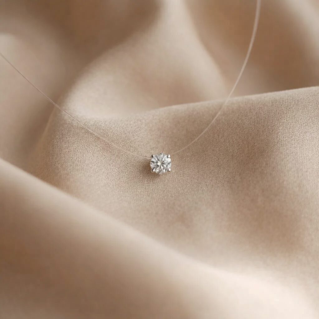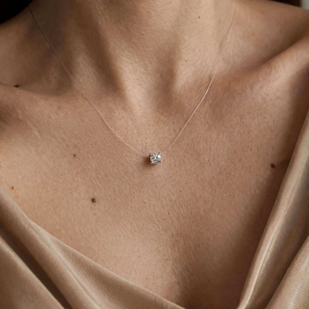 Firul invizibil poate crea iluzia că bijuteria plutește în jurul gâtului, conferind un aspect ușor și delicat.