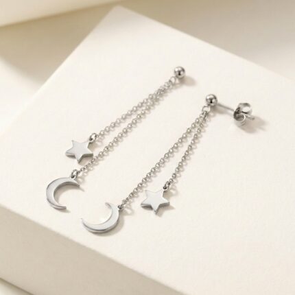 Cercei Lungi din Argint 925 cu SemiLună și Stea