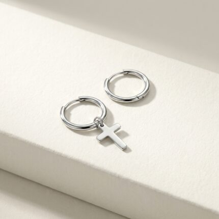 Cercei Creole Mici cu Charm Cruce din Argint 925